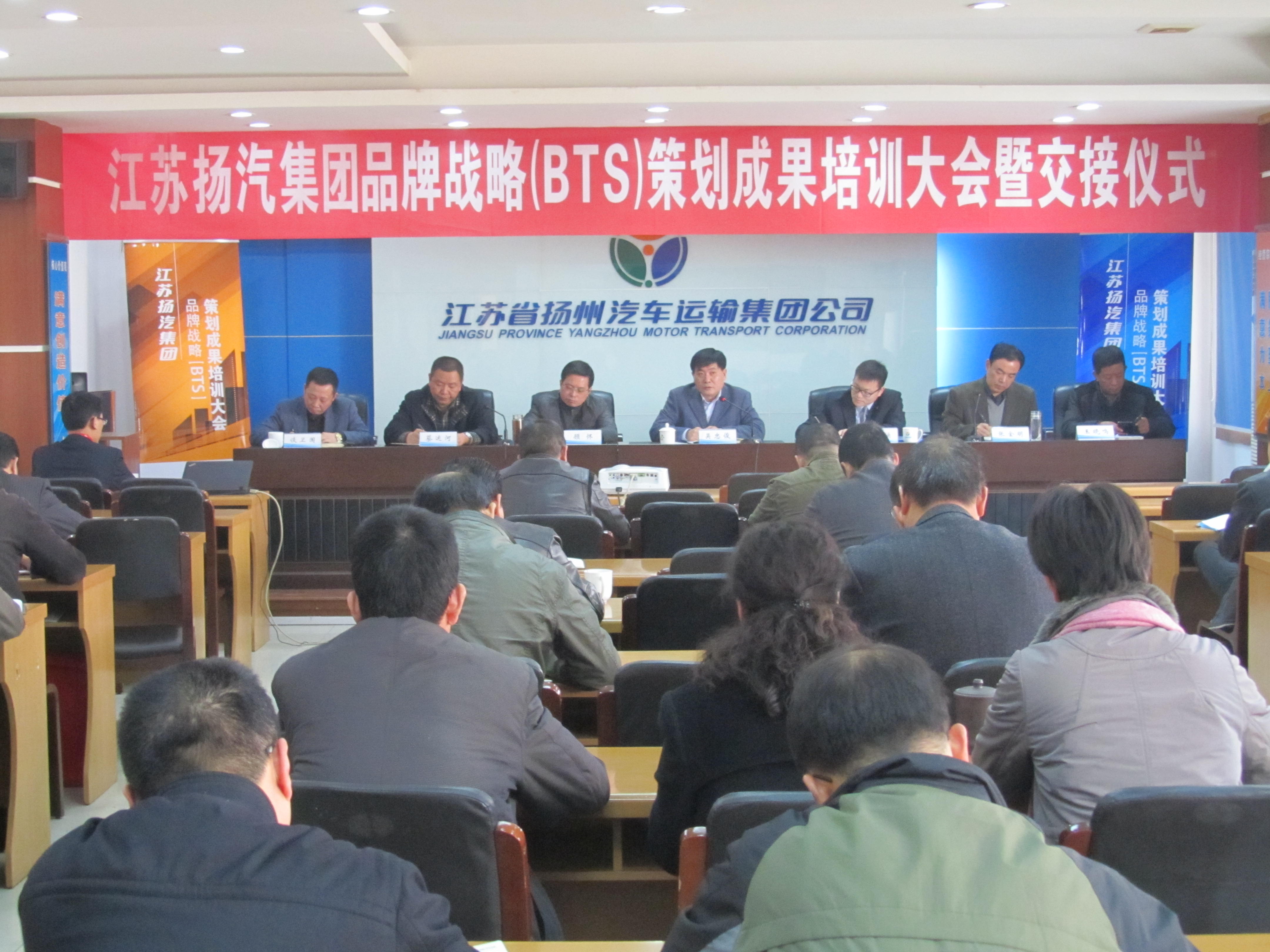 在會中進行的揚汽集團品牌戰(zhàn)略策劃成果交接儀式上,上海復為總經(jīng)理陳洪涌將項目組歷經(jīng)兩年精心策劃的揚汽集團品牌戰(zhàn)略策劃成果遞交給集團公司總經(jīng)理、黨委書記吳忠俊的手中。陳洪涌總經(jīng)理還為參會人員分別從戰(zhàn)略、定位、架構(gòu)、管控、傳播五個方面深度解讀了BTS品牌戰(zhàn)略策劃方案。此次品牌戰(zhàn)略策劃方案的完成為公司下一步品牌戰(zhàn)略的實施奠定了堅實的基礎(chǔ)。