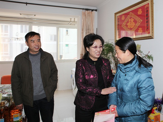 “快過年了,我代表省總工會(huì)來看看你們”,來到聯(lián)誼花園陸娟的家中,王愛平副主席首先送上了新春祝福和慰問金以及羽絨被、大米、油等生活必需品。44歲的陸娟是我司邗汽公司的一名普通職工,由于身患腎衰竭,身體不佳,需要長(zhǎng)期服藥,女兒在外地上大學(xué),家里開銷大,生活比較困難。王愛平副主席仔細(xì)詢問了陸娟的身體情況,囑咐她保重身體,有困難找工會(huì)這個(gè)“娘家”,祝愿她早日康復(fù),走出困境。在各級(jí)工會(huì)組織的關(guān)心下,陸娟的病情已得到控制,現(xiàn)在仍然堅(jiān)持上班,家里女兒也十分懂事,利用寒假期間打工補(bǔ)貼家用,一家人的生活正逐漸好轉(zhuǎn)起來。