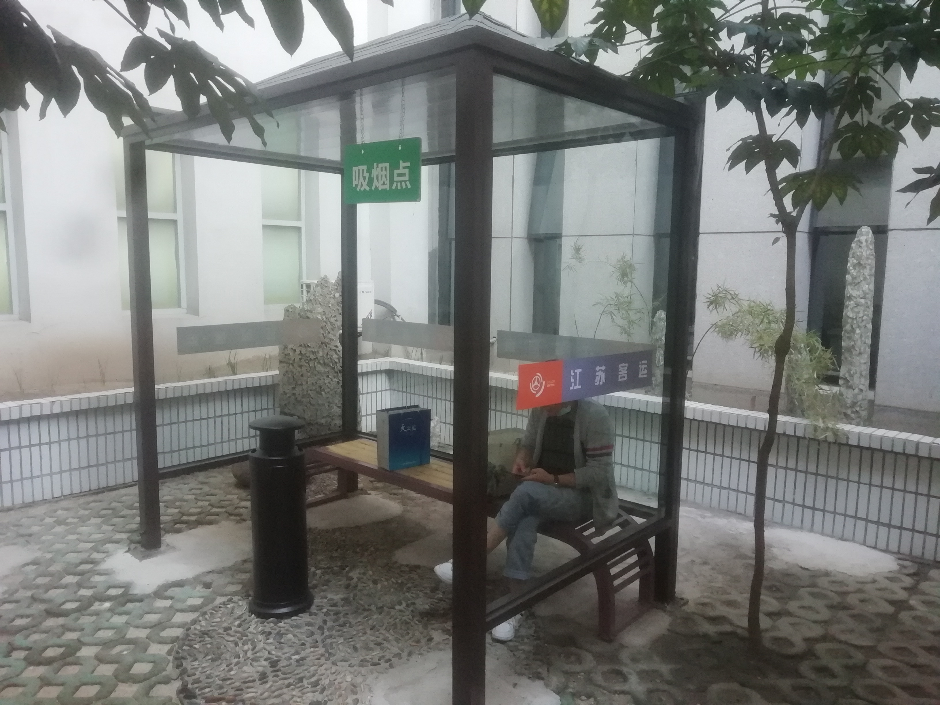 近日,汽車東站候車廳的東西兩側(cè)新添了一道風(fēng)景線,在原本設(shè)置的露天吸煙室里各添置了一個吸煙亭,下雨的日子里,旅客也可以坐在室外抽煙了。