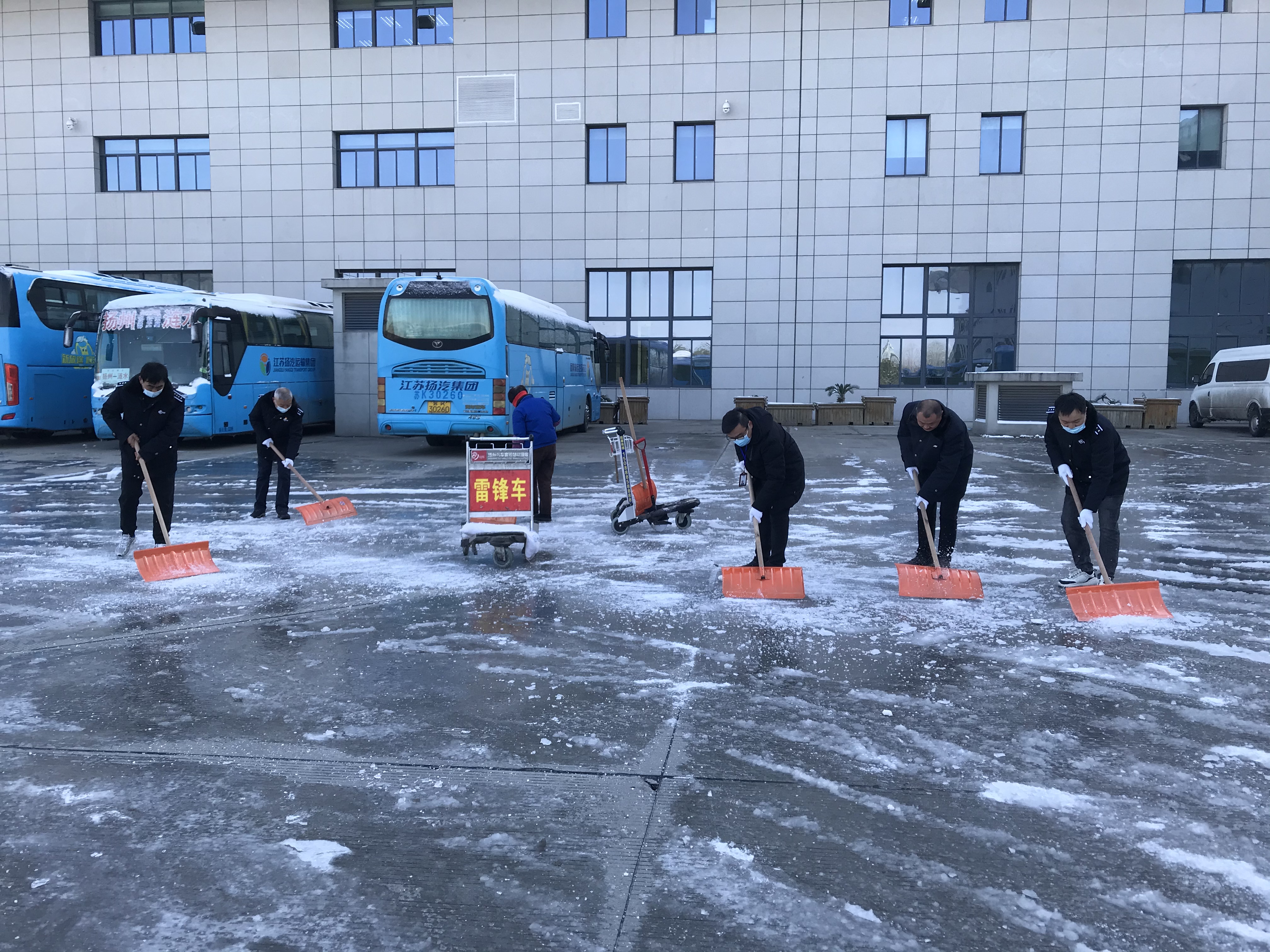 12月30日早上各黨支部積極響應(yīng)集團黨委號召,組織黨員干部、管理人員協(xié)助車站清理積雪,在站前廣場、發(fā)車平臺,進出站口等重點部位,大家拿著掃把、草墊、鐵鍬、雪鏟,充分發(fā)揮團隊協(xié)作精神,干勁十足,一派熱火朝天景象,為班線開通做好后勤保障。