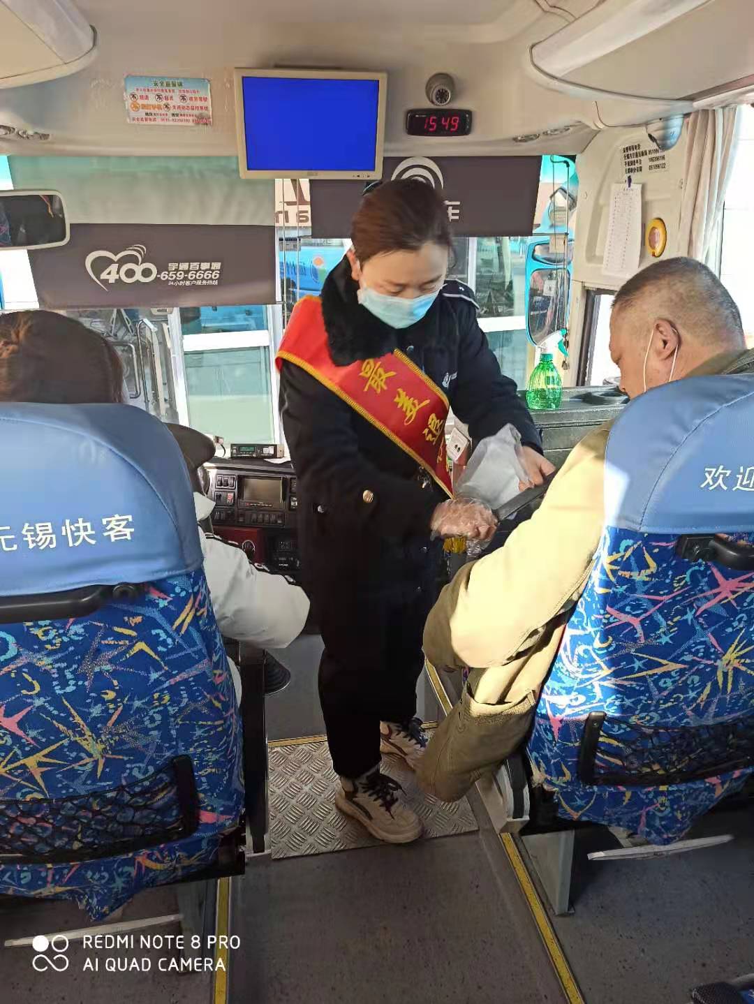 “您乘坐的車輛已經(jīng)消毒過,請放心上車…,老人家,你倆戴的口罩破了,我這有新的,請你換上…,請大家保持一米距離檢票,時間充裕,不會耽誤大家行程…,請大家檢票上車后,系帶好安全帶,口罩不能摘…”。一連串的溫馨提醒和戴著口罩仍在眉宇間“跳躍”著的笑容,讓旅客感到十分暖心?诓煌、手不停每天數(shù)百遍地完美重復(fù)為旅客服務(wù)的場景,正是她幾年軍營生活、過硬作風(fēng)養(yǎng)成的積淀,更是她退役轉(zhuǎn)崗后,愛崗敬業(yè)的生動寫照。前幾日的一天下午,有位蘇州的旅客一旁候車時,看到當(dāng)班吳琳檢票發(fā)車時嫻熟的連貫動作和麻利果斷指揮發(fā)車標(biāo)準(zhǔn)旗語手勢時,情不自禁地掏出手機(jī),“啪差…”拍個不停,嘴里還自言自語道:“這個畫面好,這個畫面好…”。
