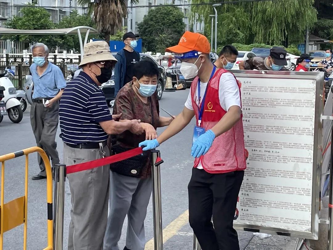 “您好,請各位正確戴好口罩,提前準備好蘇康碼和行程碼”,在烈日高溫下,五金市場的戚長春身處防疫第一線,積極配合社區(qū)工作人員進行分流疏導、維護秩序等服務工作。嗓子喊啞了,衣服濕透了,他沒有半句怨言,為營造有序、文明的環(huán)境,貢獻自己的一份力量。