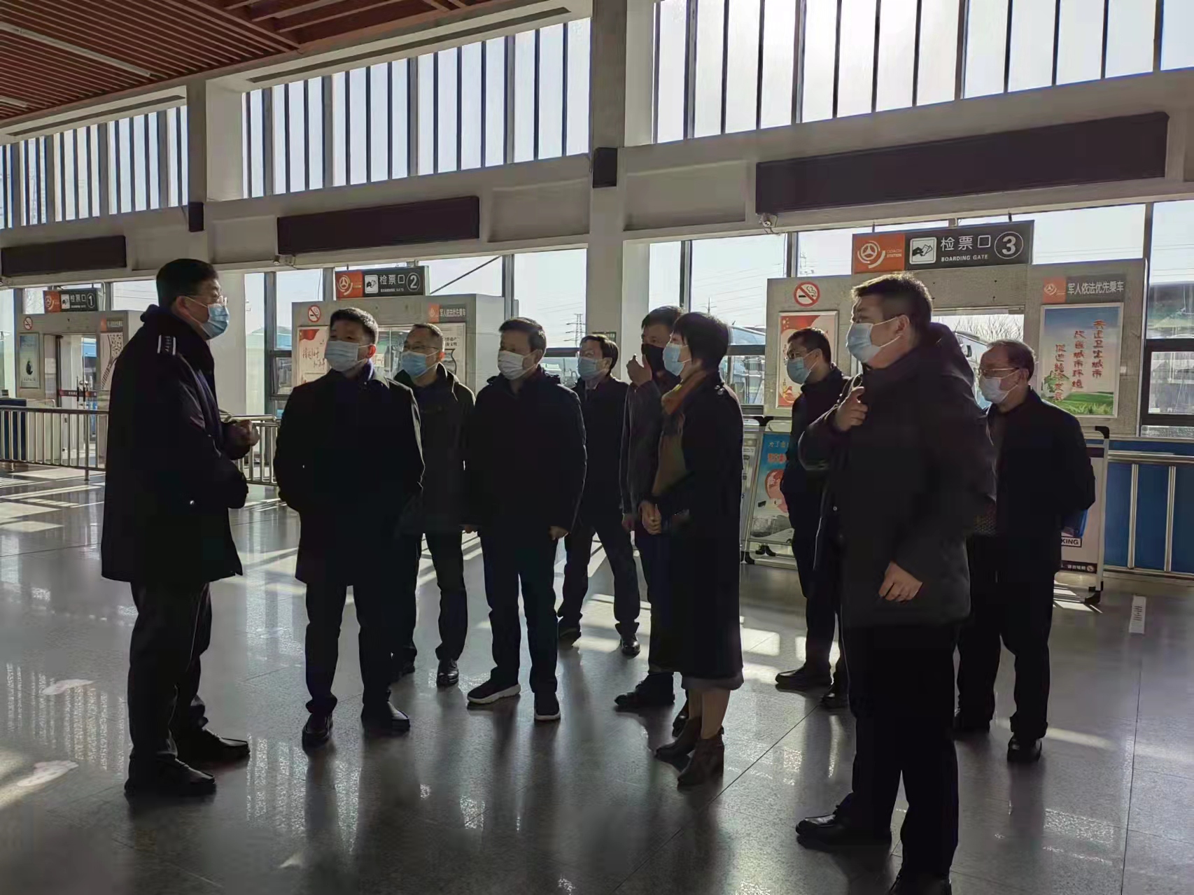 朱定金強(qiáng)調(diào),春節(jié)假期接近尾聲,返程高峰即將到來,車站旅客人數(shù)將有所增加,值班值守的人員要繼續(xù)堅(jiān)守崗位,做好個(gè)人防護(hù),同時(shí)注意防寒防暖。車站要扎實(shí)做好春節(jié)各項(xiàng)安全防范工作,牢固樹立客運(yùn)站的安全發(fā)展理念,疫情防控工作時(shí)刻不能松懈,嚴(yán)格按照規(guī)定對(duì)場站、車輛進(jìn)行通風(fēng)消毒,嚴(yán)查旅客健康碼和體溫檢測,提醒旅客全程規(guī)范佩戴口站、落實(shí)好“一米線”等要求。常態(tài)化疫情防控下的春運(yùn),車站服務(wù)不能打折扣,用心守護(hù)好江都的大門,讓旅客出行變的更有溫度。