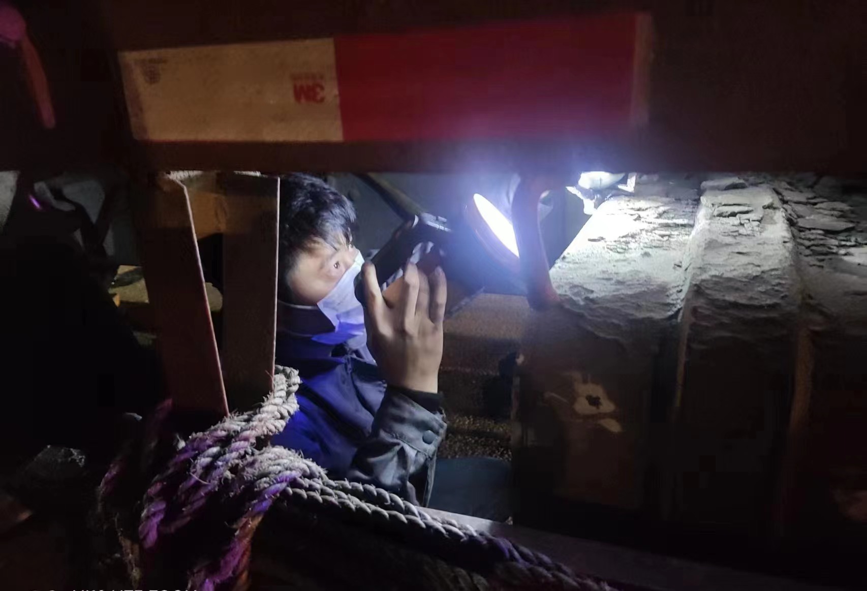 到達(dá)現(xiàn)場之后,維修師傅立即展開排查,憑借豐富的維修經(jīng)驗(yàn)快速排查出車輛故障是傳動(dòng)軸固定支架老化損壞,再加上過收費(fèi)站減速帶時(shí)顛簸,導(dǎo)致動(dòng)力傳動(dòng)軸脫落,車輛無法正常行駛。為盡快完成維修,維修師傅們做好分工,各司其職。在場地、燈光條件都不足的情況下,冒著嚴(yán)寒,經(jīng)過2個(gè)多小時(shí)的搶修,車輛系統(tǒng)得以恢復(fù)正常。