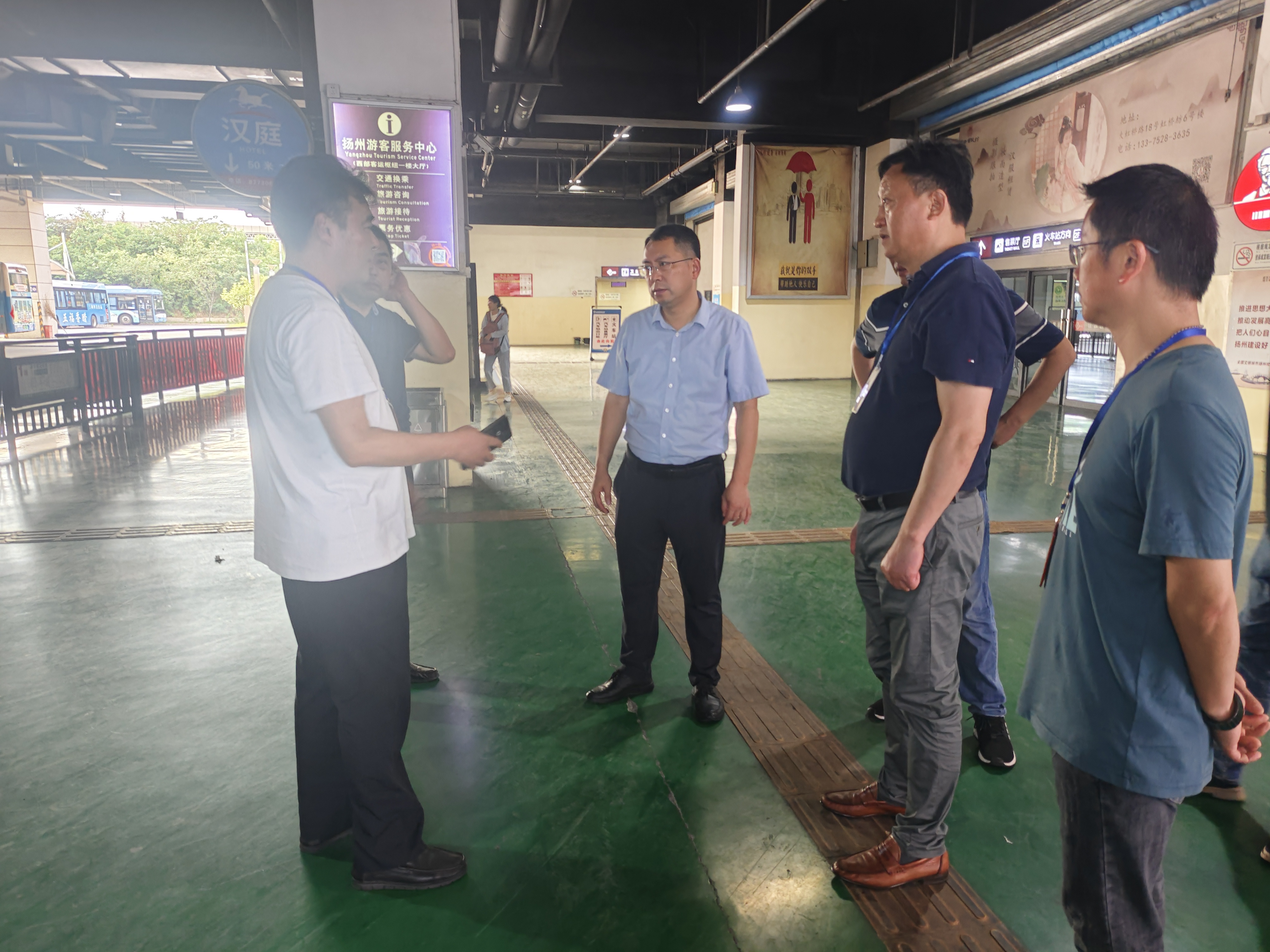 為落實好“安全生產(chǎn)月”活動要求,緊扣“人人講安全、個個會應急”主題,近日,市交通產(chǎn)業(yè)集團副總經(jīng)理,揚汽集團黨委書記、董事長龔宇峰帶隊檢查揚州汽車站安全生產(chǎn)工作,集團副總經(jīng)理劉俊及相關(guān)部門負責人陪同檢查。
