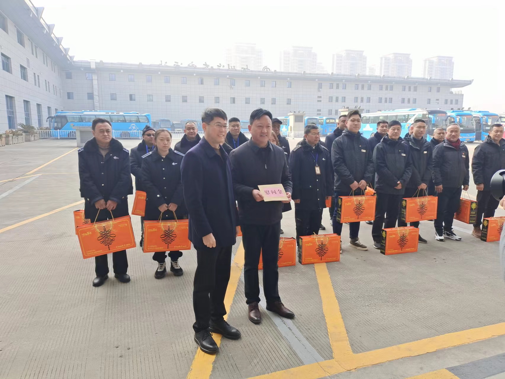 2月9日除夕,在萬家團(tuán)聚、喜迎新春之時(shí),市交通產(chǎn)業(yè)集團(tuán)黨委書記、董事長(zhǎng)方璇智帶隊(duì)來到揚(yáng)汽集團(tuán)生產(chǎn)一線,慰問堅(jiān)守崗位的干部職工,為他們送去慰問品和祝福,對(duì)他們?cè)谛麓杭压?jié)期間堅(jiān)守工作崗位,付出辛勤勞動(dòng)表示衷心感謝,并向他們致以新年問候。